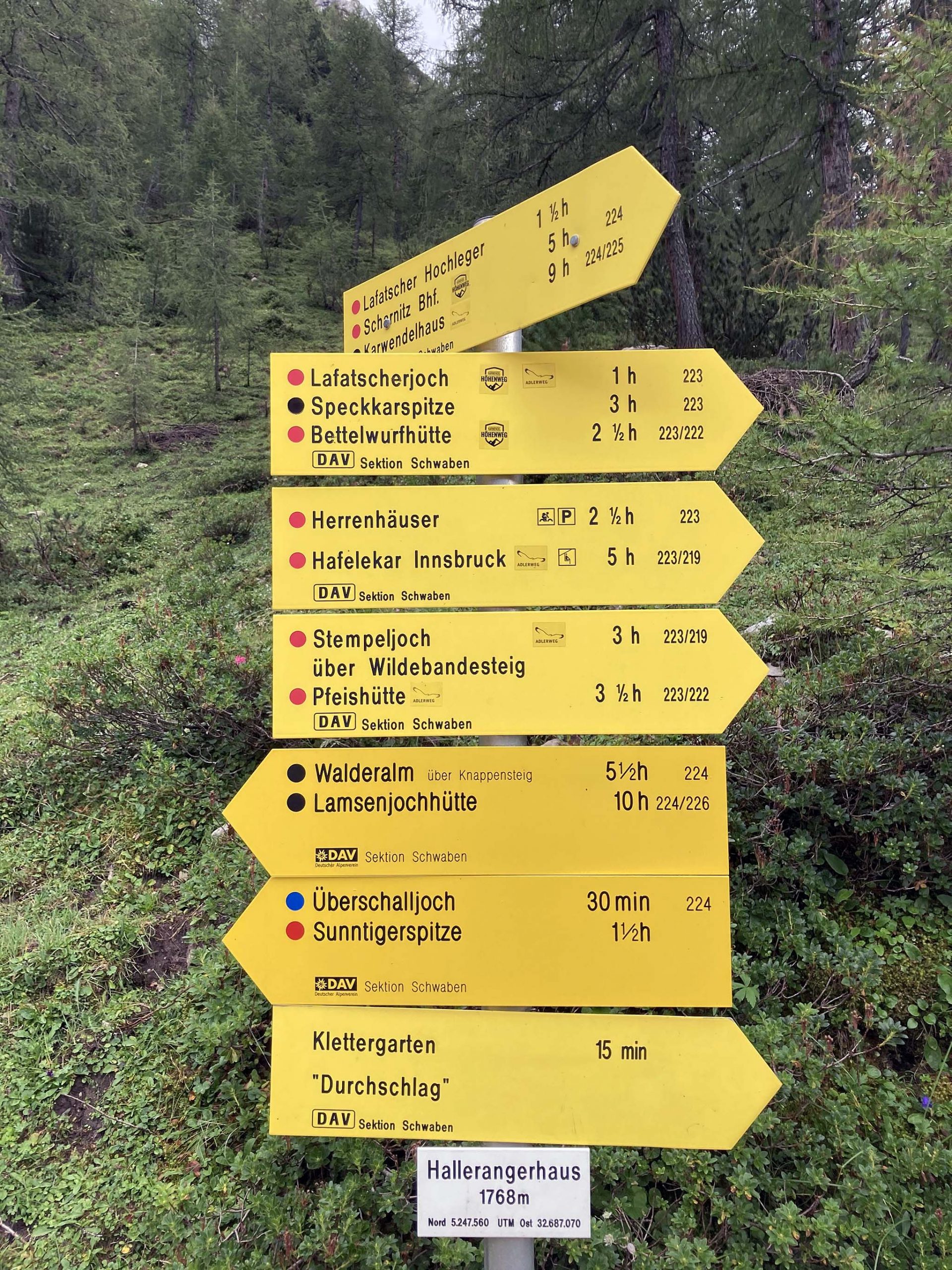 Alternativ für schlechtes Wetter habe ich den Abstieg vom Lafatscher Joch durch das Halltal hinab nach Hall in Tirol geplant. Dort mit der S-Bahn nach Innsbruck.