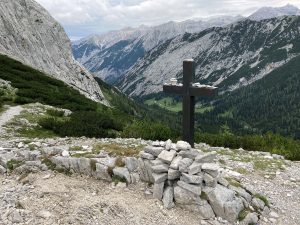 Das Lafatscher Joch (2081m) haben wir dann um 08:30 Uhr erreicht. Zu diesem Zeitpunkt war das Joch noch wolkenfrei.