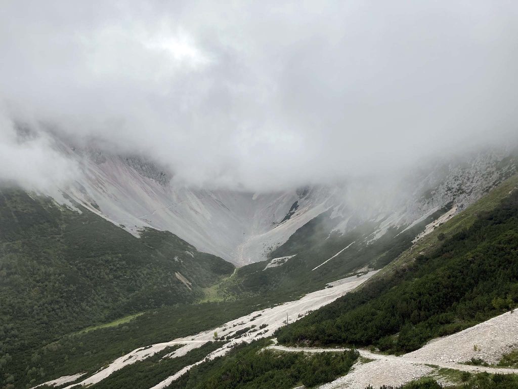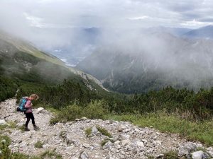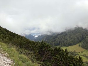 Aufgrund des Wetters haben wir uns dann für den Abstieg über das Halltal entschieden, da wir nicht auf ca. 2000 Metern im Nebel bzw. Regen mit Gewitterrisiko umherirren wollten.