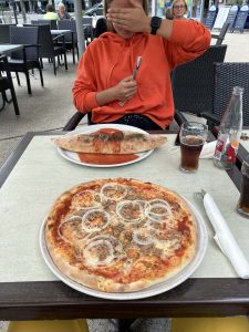 Nachdem wir erst mal geduscht hatten ging es dann nach Innsbruck in eine Pizzeria zum Mitagessen. Kim hat dort das erste mal eine Calzone gegessen und war begeistert.