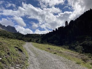 Unser Zimmer mussten wir bis 11 Uhr räumen, also ging es gegen 11 Uhr wieder zum Bahnhof von Innsbruck, um dort den Bus nach Grinzens (Haltestelle Grinzens Abzweig Kemater Alm) zu nehmen. Dort sind wir dann gegen 12 Uhr angekommen und haben uns an den kurzen Aufstieg zur Adofl-Pichler-Hütte gemacht.