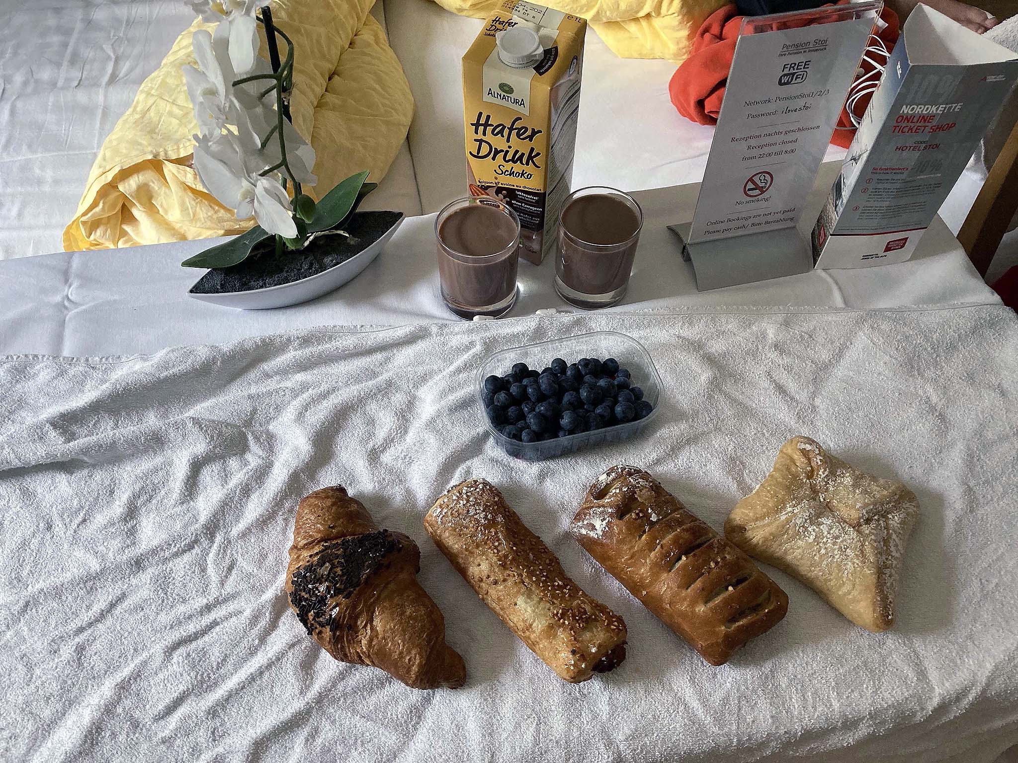 Da die heutige Etappe nicht sehr lange bzw. wetterabhängig ist konnten wir an diesem Tag auch mal ordentlich ausschlafen. Gegen 9 Uhr haben wir uns dann ein kleines Frühstück vom Bäcker bzw. Supermarkt organisiert und gemütlich in unserem Zimmer gegessen.
