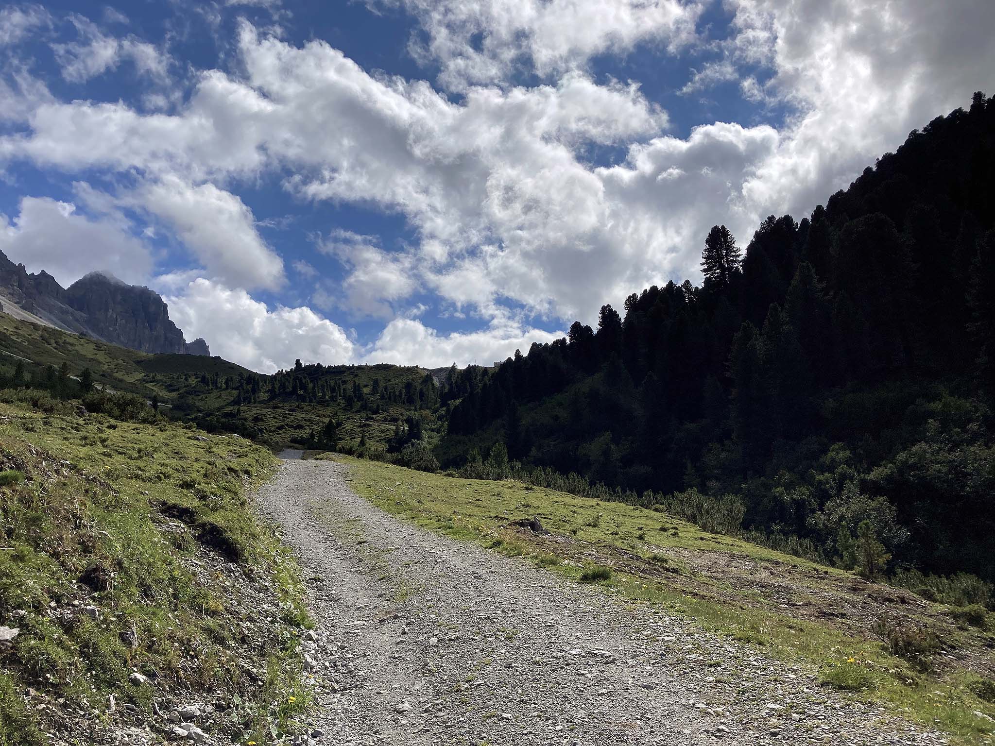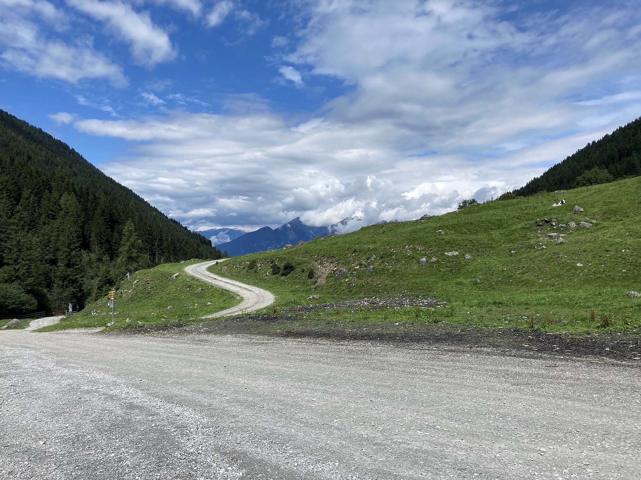 Auf einer Mautstraße ging es beständig bergan. Die Straße wurde aber auch immer wieder von Autos befahren. Kim hat ein derartiges Tempo vorgelegt, sodass wir uns nach kurzer Zeit aus den Augen verloren haben. Dann hat uns auch noch ein kurzer Regenschauer erwischt. Nach einem drittel der Strecke haben wir an einem Brotzeithäuschen mit Wildkamera dann eine kurze Pause mit Brotzeit eingelegt.
