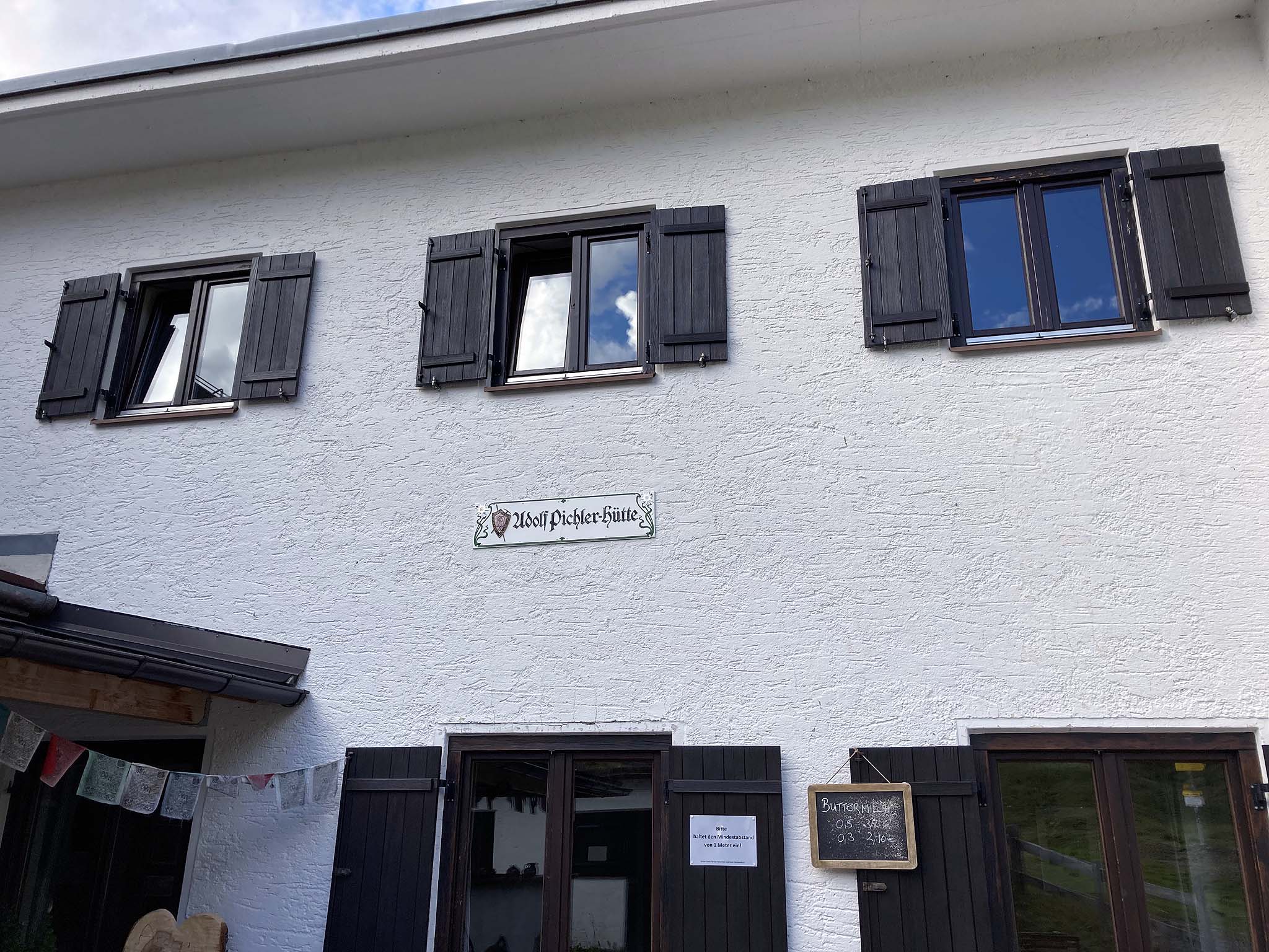 Das Wetter war mittlerweile heiter, aber relativ kühl auf 1977m. Obwohl wir erst den Kaiserschmarren gegessen hatten hatte Kim gleich nach der Ankunft auf der Adolf-Pichler-Hütte schon wieder Hunger und hat bis zum Beginn des Abendessens genervt.
