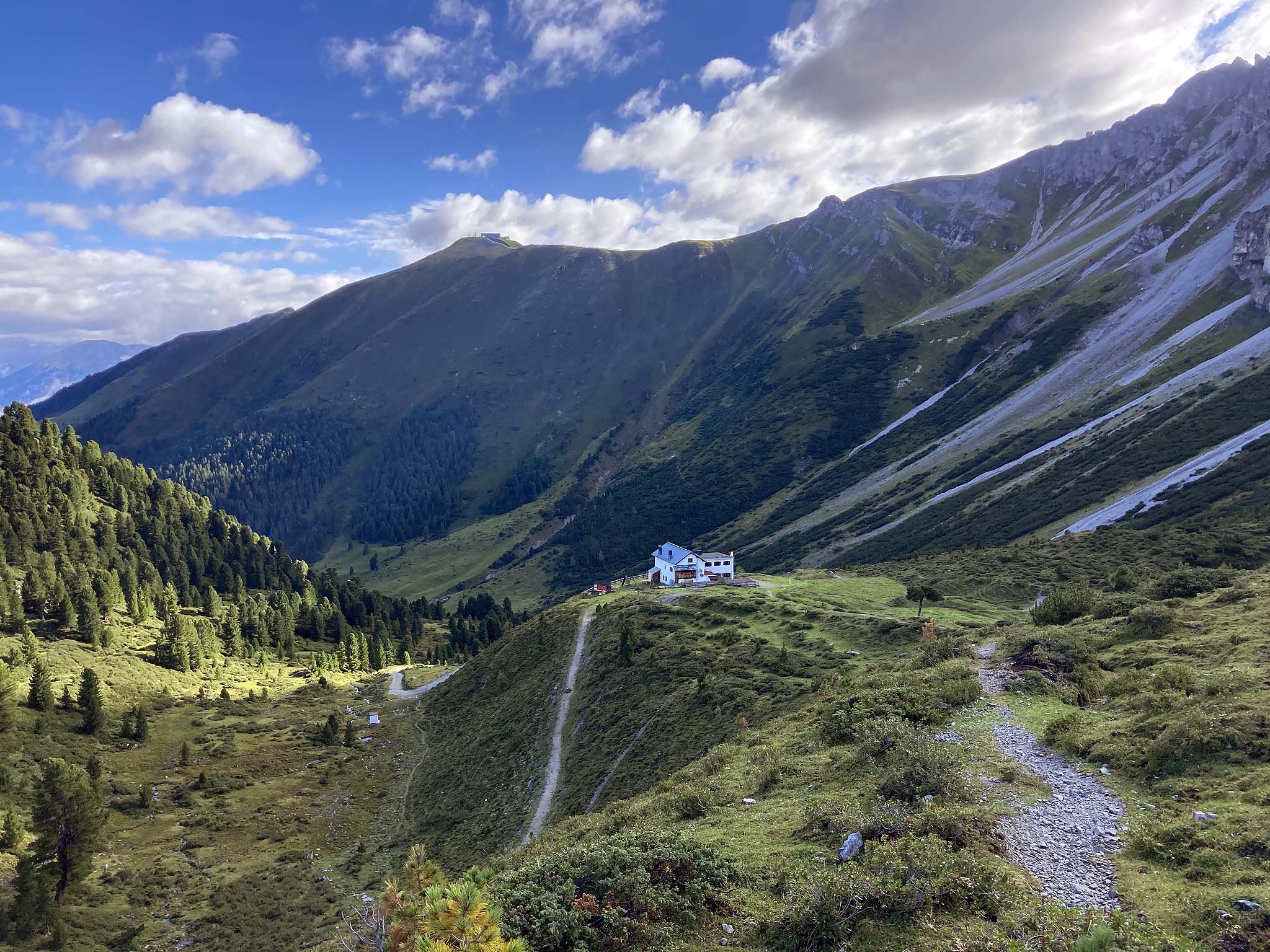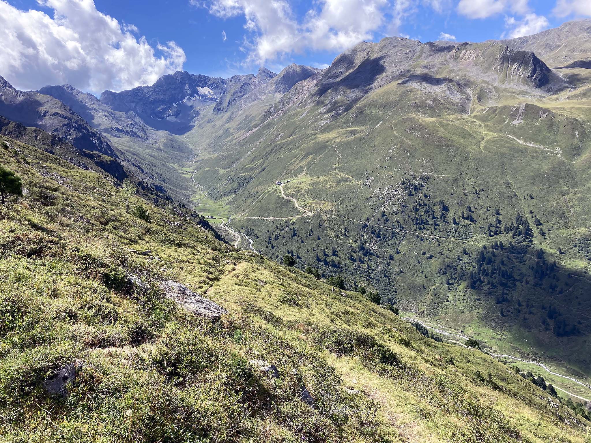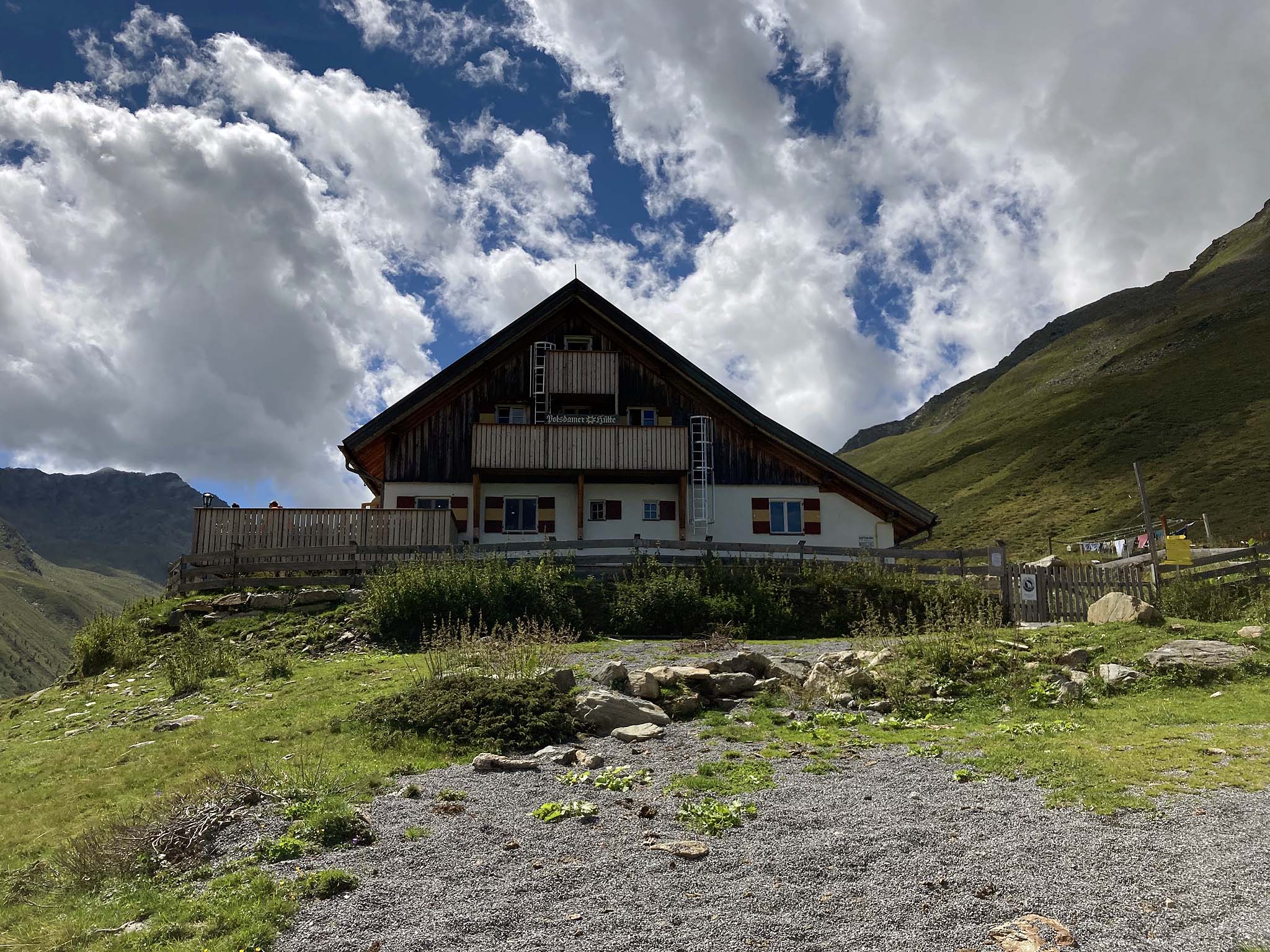 Am Gipfel konnte man dann auch schon unser Ziel sehen. Nach dem Abstieg ins Fotscher Tal und kurzem Aufstieg zur Potsdamer Hütte waren wir am frühen Nachmittag dann auch schon am Ziel.