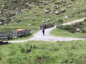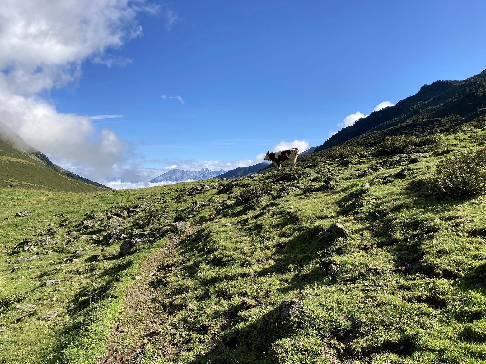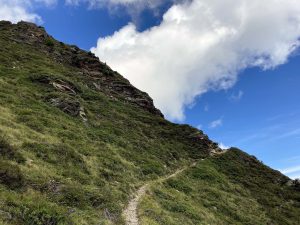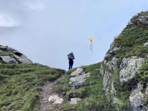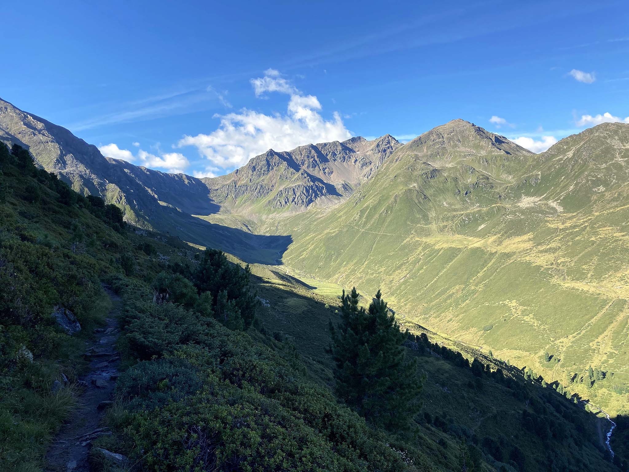 Die Route verläuft hinter der Adolf-Pichler-Hütte Richtung Süd-West über den Grat des Sonntagsköpfl hinaub in das nächste Tal. Dort folgt ein kurzer Aufstieg zum Kreuzjöchl und von hier hinab ins Fotscher Tal zur Potsdamer Hütte.