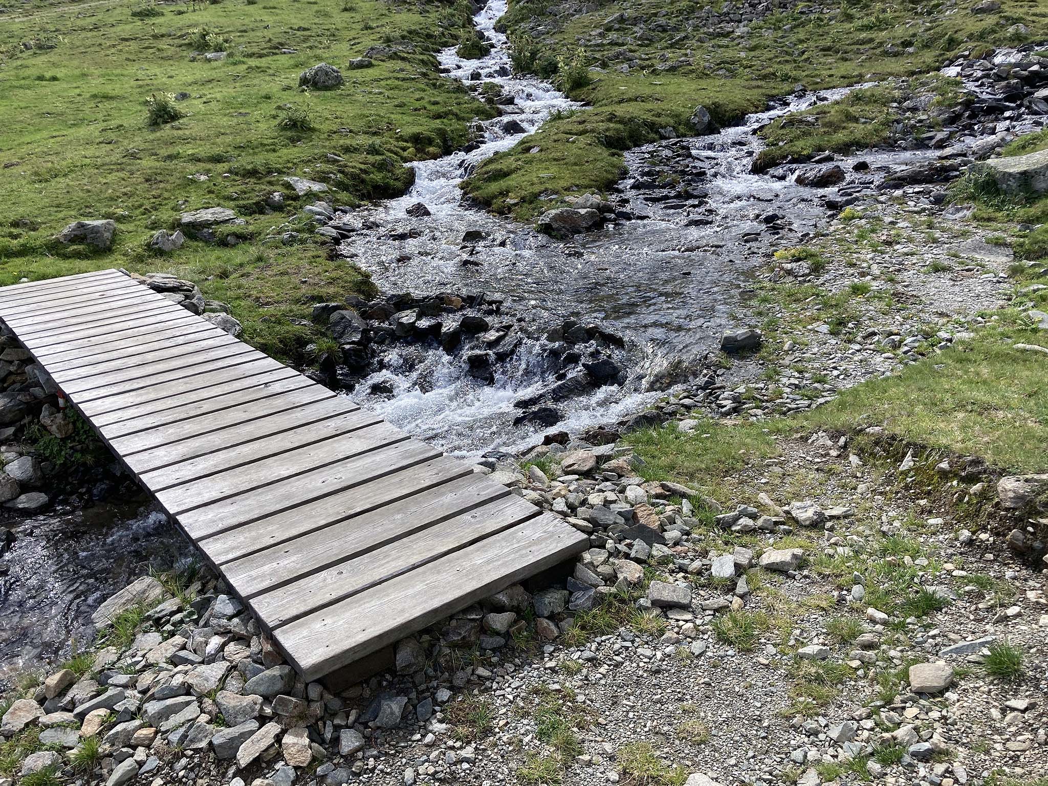 Gegen 10 Uhr hatten wir den ersten Bergkamm bezwungen und waren im Tal an einem Bachlauf angekommen. Da wir heute überhaupt keinen Stress hatten haben wir uns dort ungefähr eine Stunde Zeit genommen um in dem Bach einen Damm zu bauen.