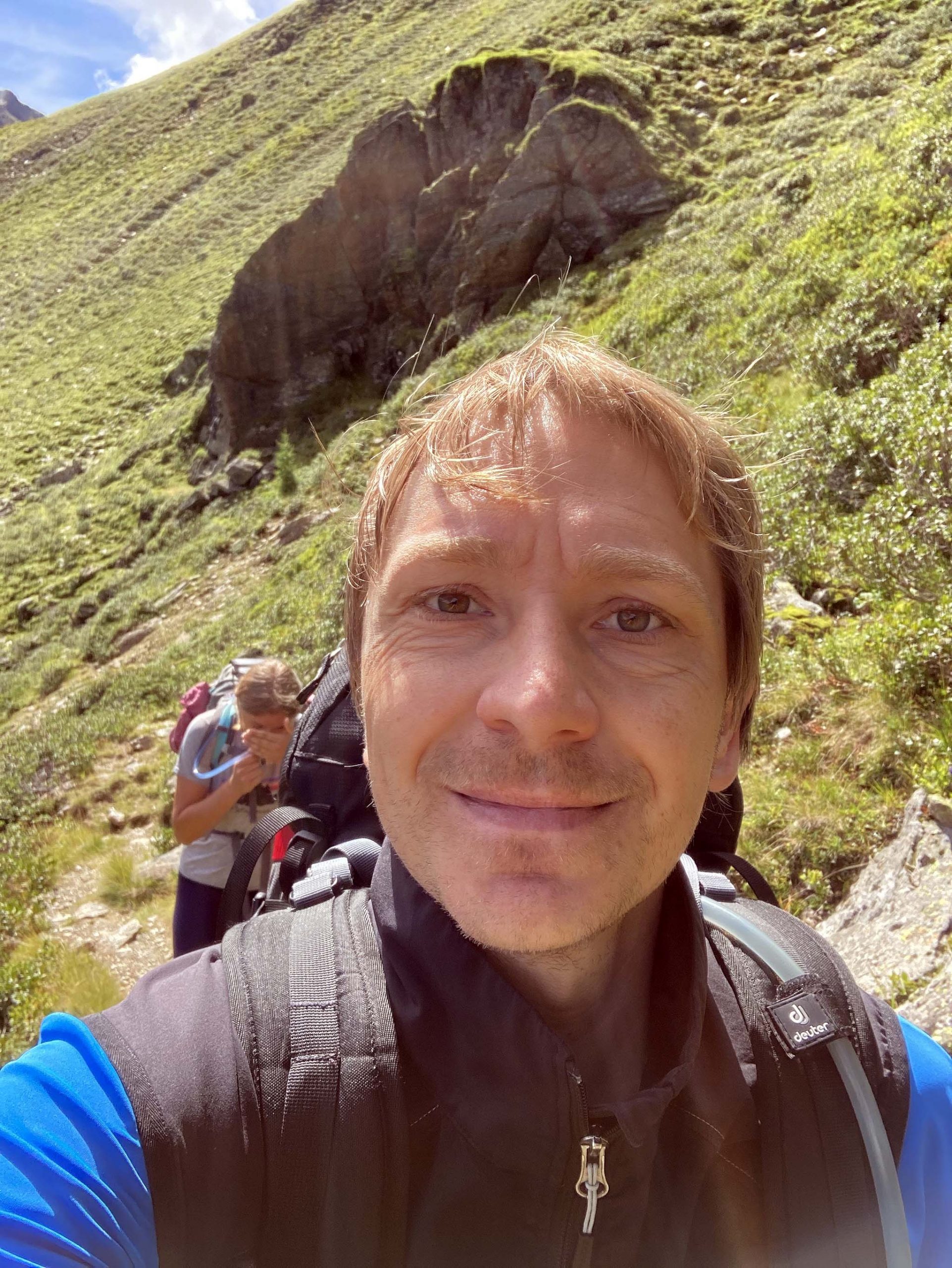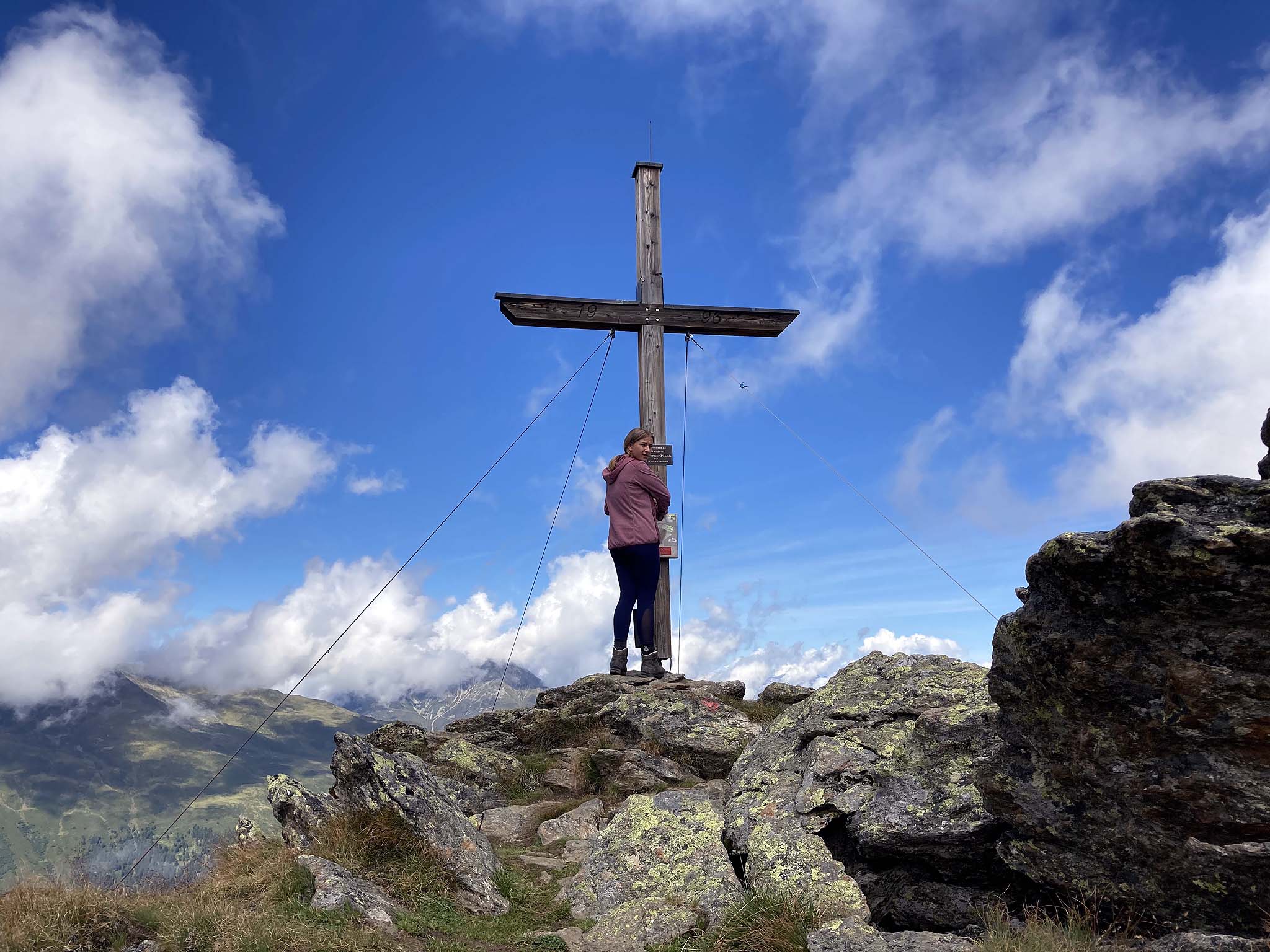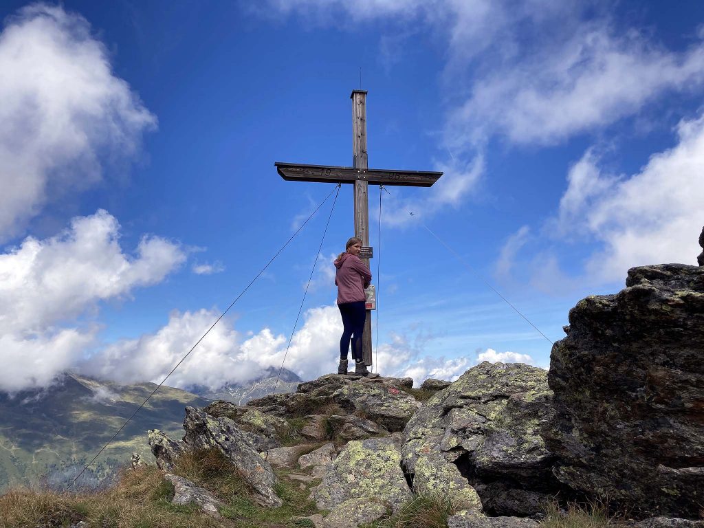 Gegen 11 Uhr ging es dann wieder los und hoch in Richtung Kreuzjöchl. Dort haben wir unsere Brotzeit gemacht und dann die Rucksäcke abgelegt und sind ohne Gepäck zum Gipfel des Schaflegers hoch gegangen. Martin musste dazu aber mit einer Gipfelschokolade, die er noch aus Innsbruck im Rucksack hatte locken.