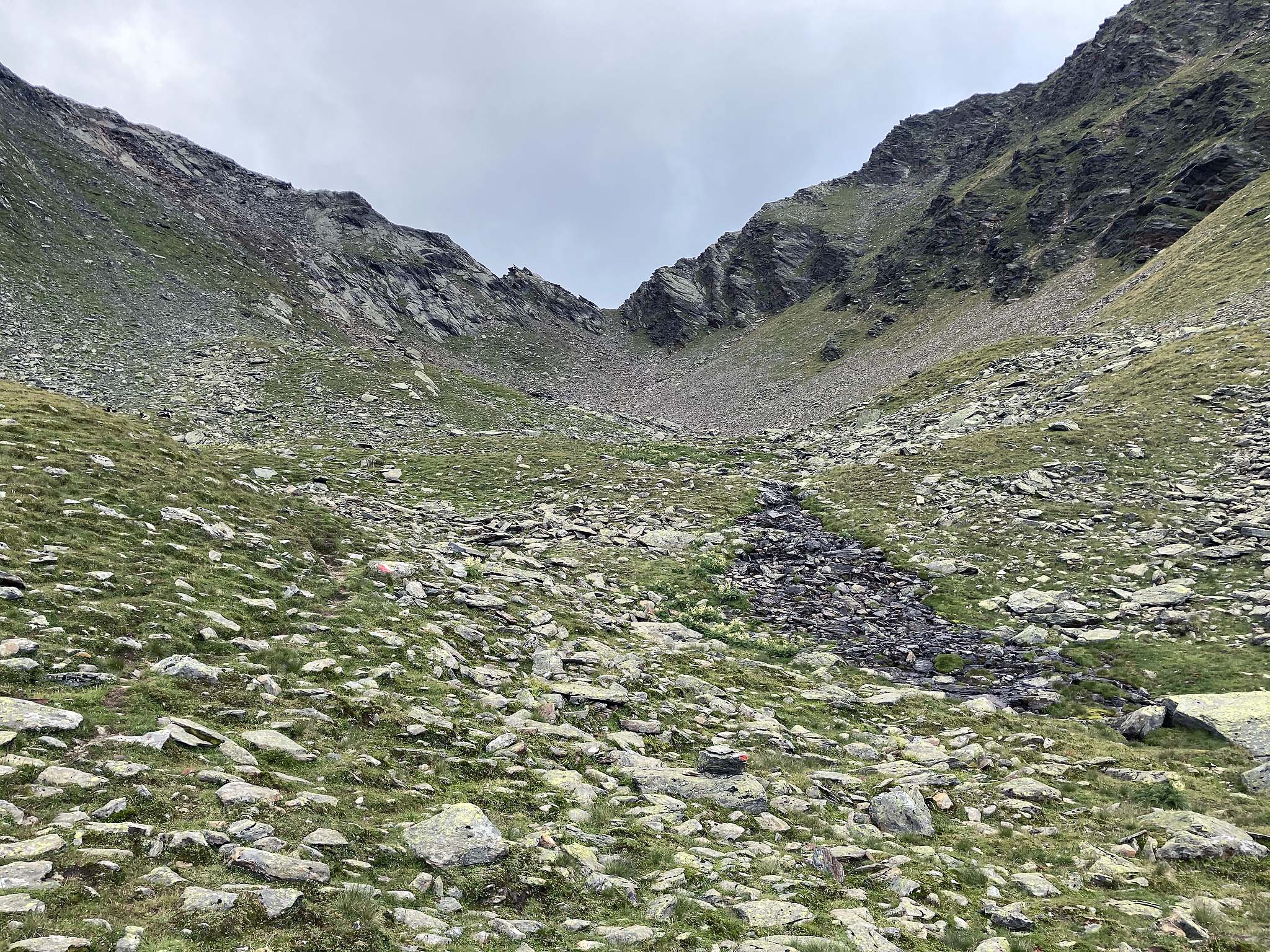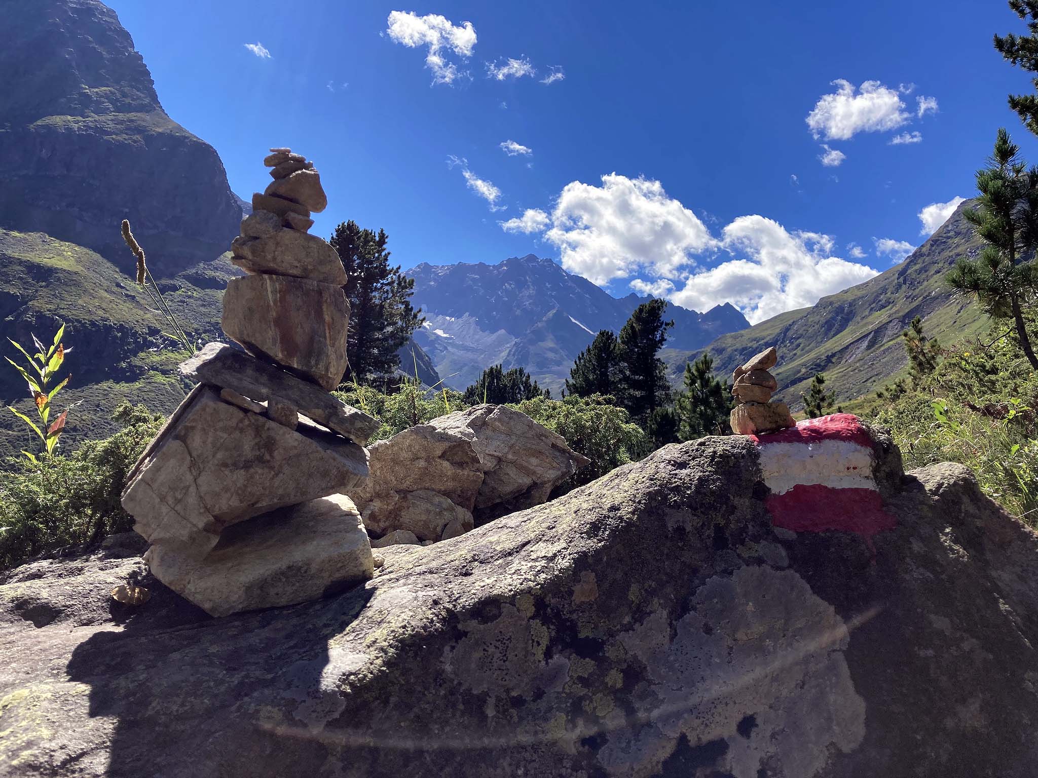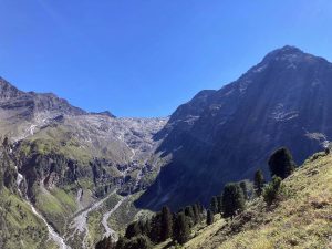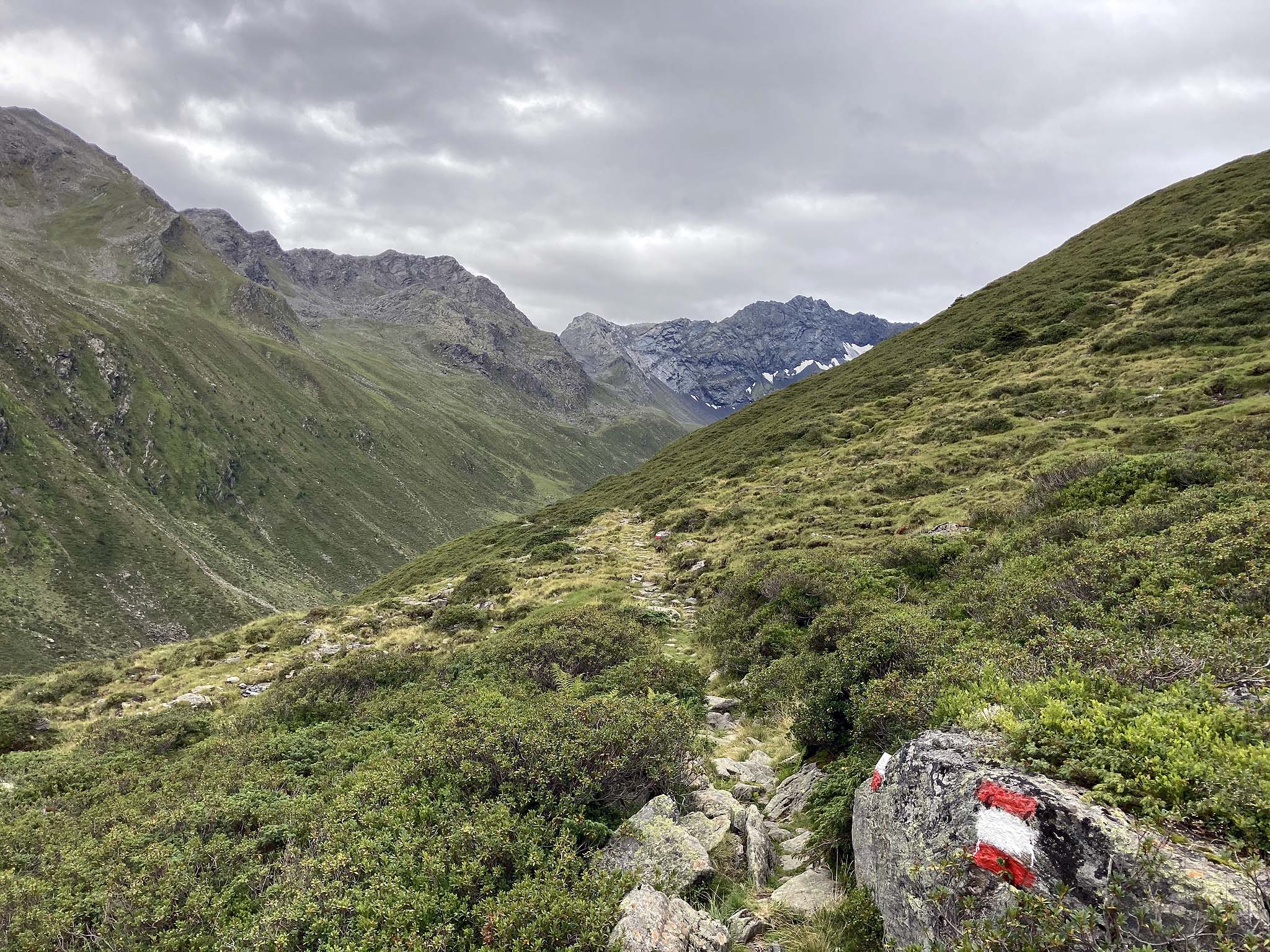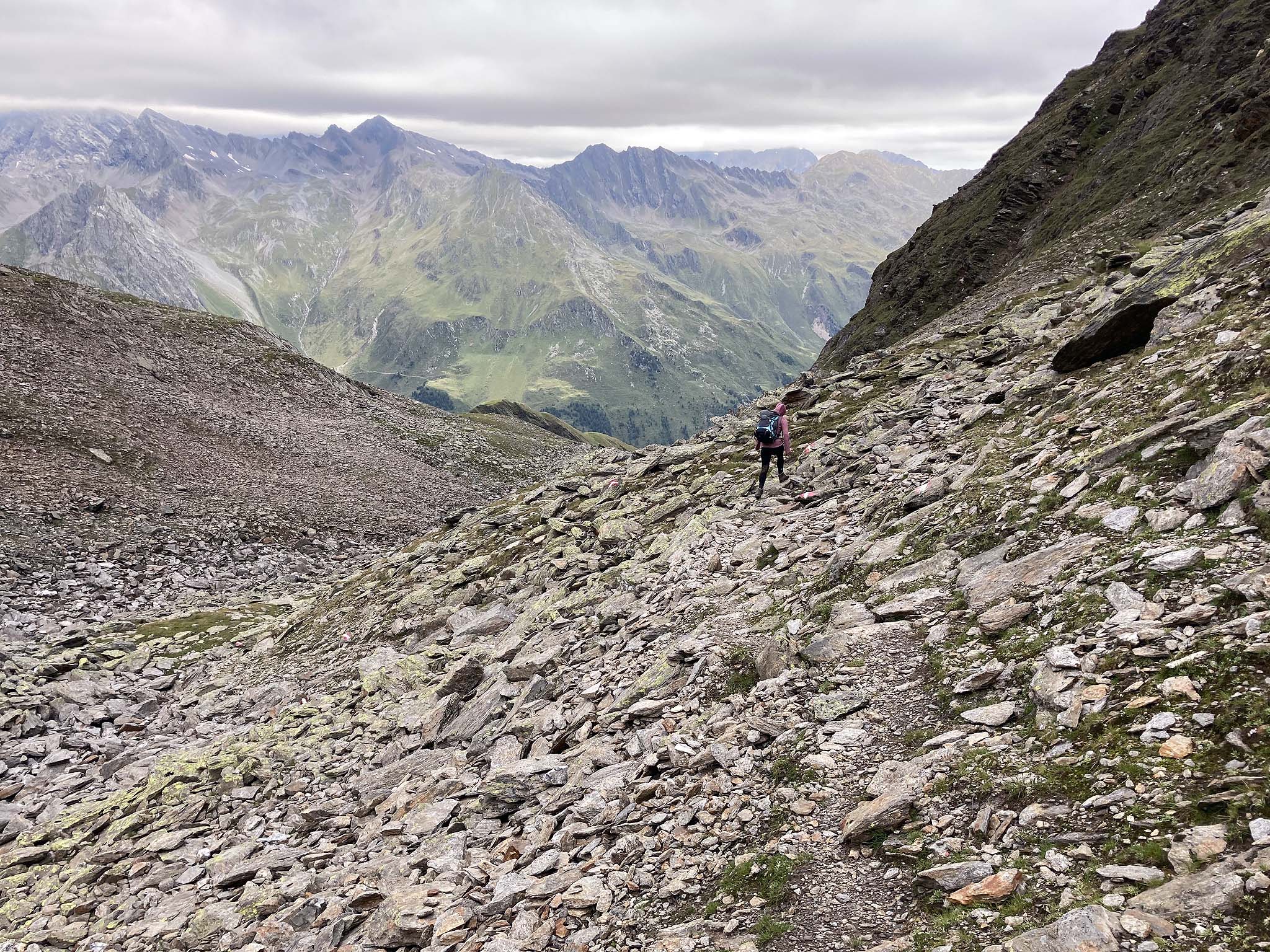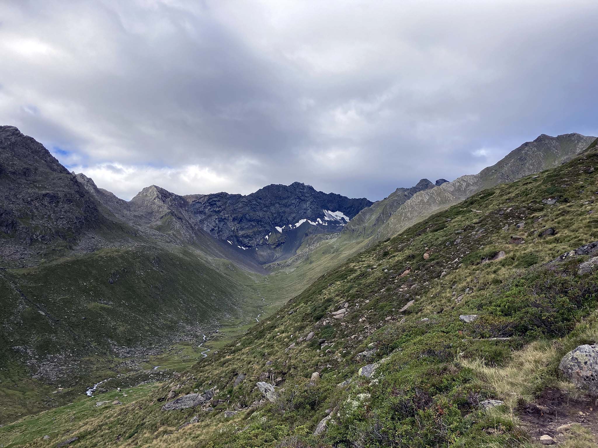 Erst beim Abstieg nach Lüsens sind die Wolken aufgerissen und die Sonne ist endlich durchgekommen und es hat sich ein herrlicher Blick auf den Lüsener Fernerkogel eröffnet.