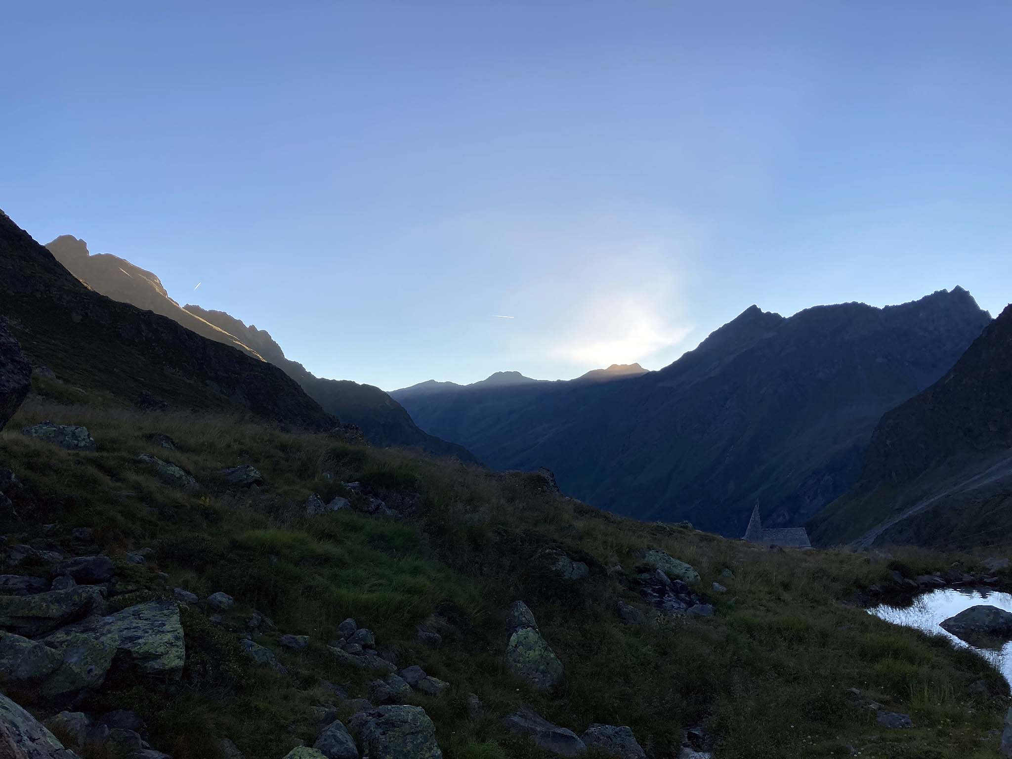 Da die heutige Tour wieder nicht all zu lange ist, haben wir den Wecker erst auf 6:45 Uhr gestellt. Martin ist aber schon vor dem Wecker aufgestanden, um ein paar Bilder vom Sonnenaufgang zu machen.