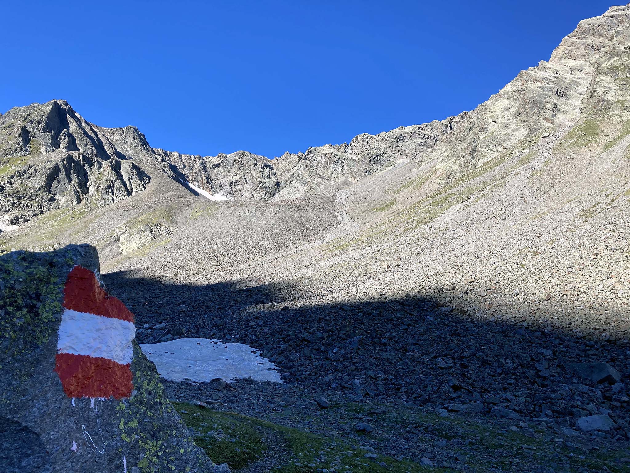 Der Ausstieg aus dem Kar war dann rechts relativ einfach durch ein Wegweiser zu finden. Von dort an war der Wanderweg auch wieder markiert.
