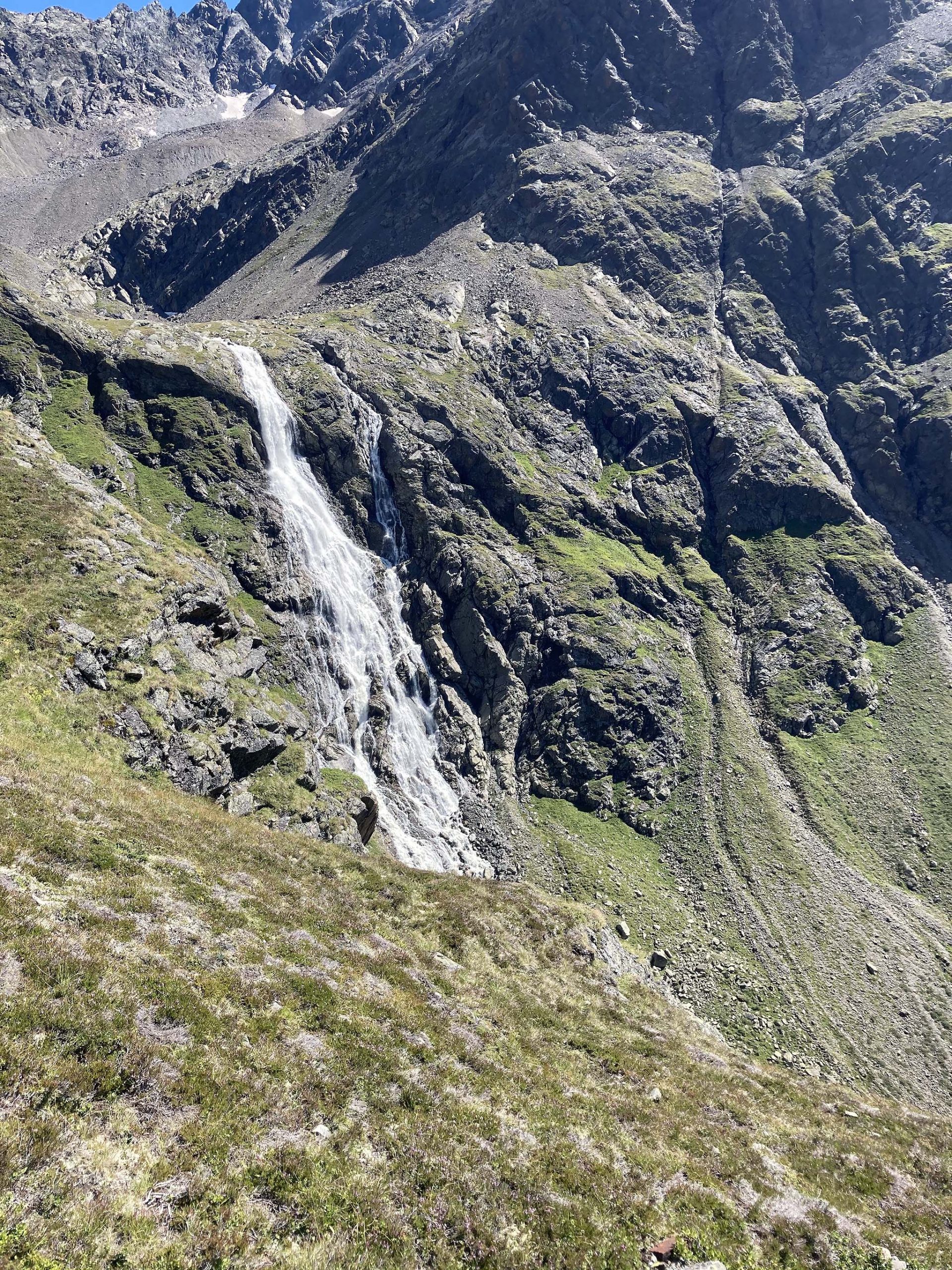 Anfangs war der Weg noch markiert, auf ca. 2800m Höhe haben die Markierungen aber dann aufgehört. An dieser Stelle haben wir dann erst mal eine kleine Pause mit Brotzeit und Fotoshooting gemacht. Kurz vor der Stelle hat Martin an einem Wasserfall auch seine Trinkflasche aufgefüllt.