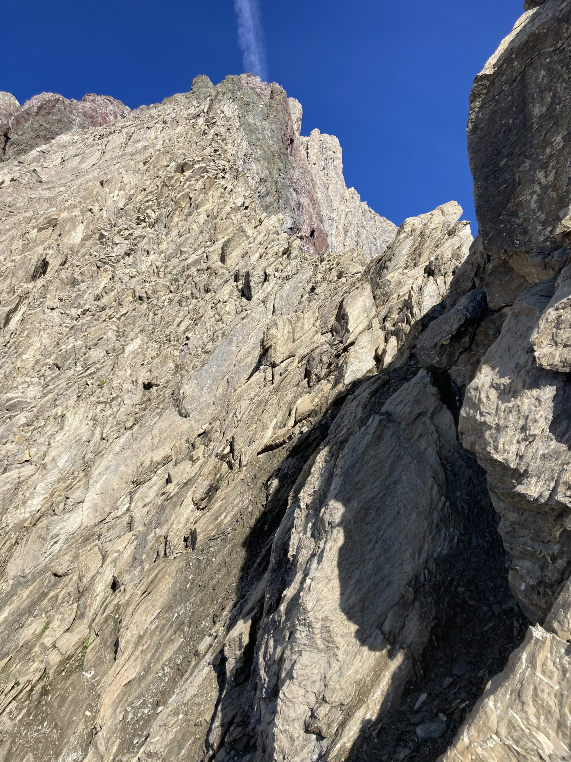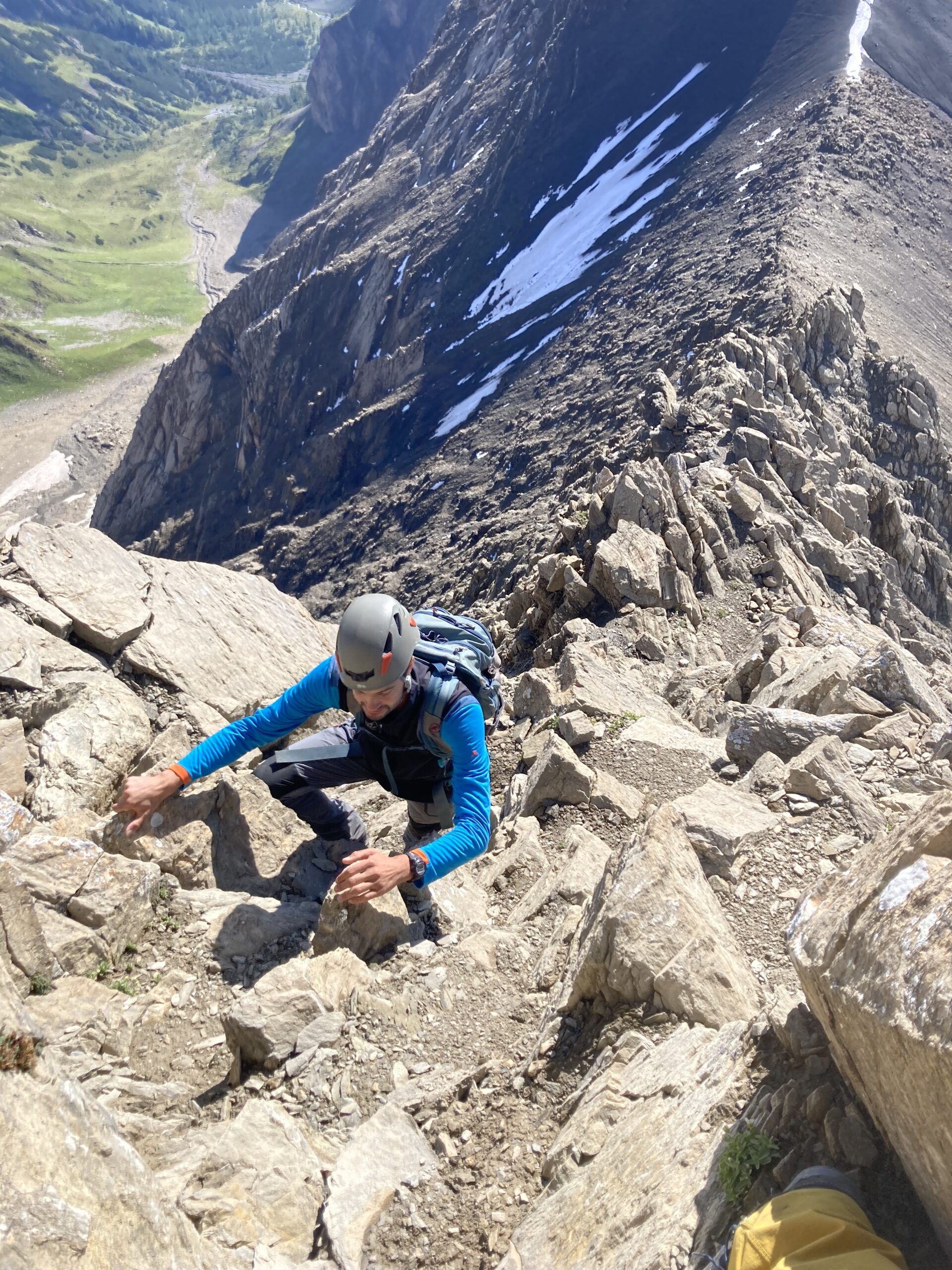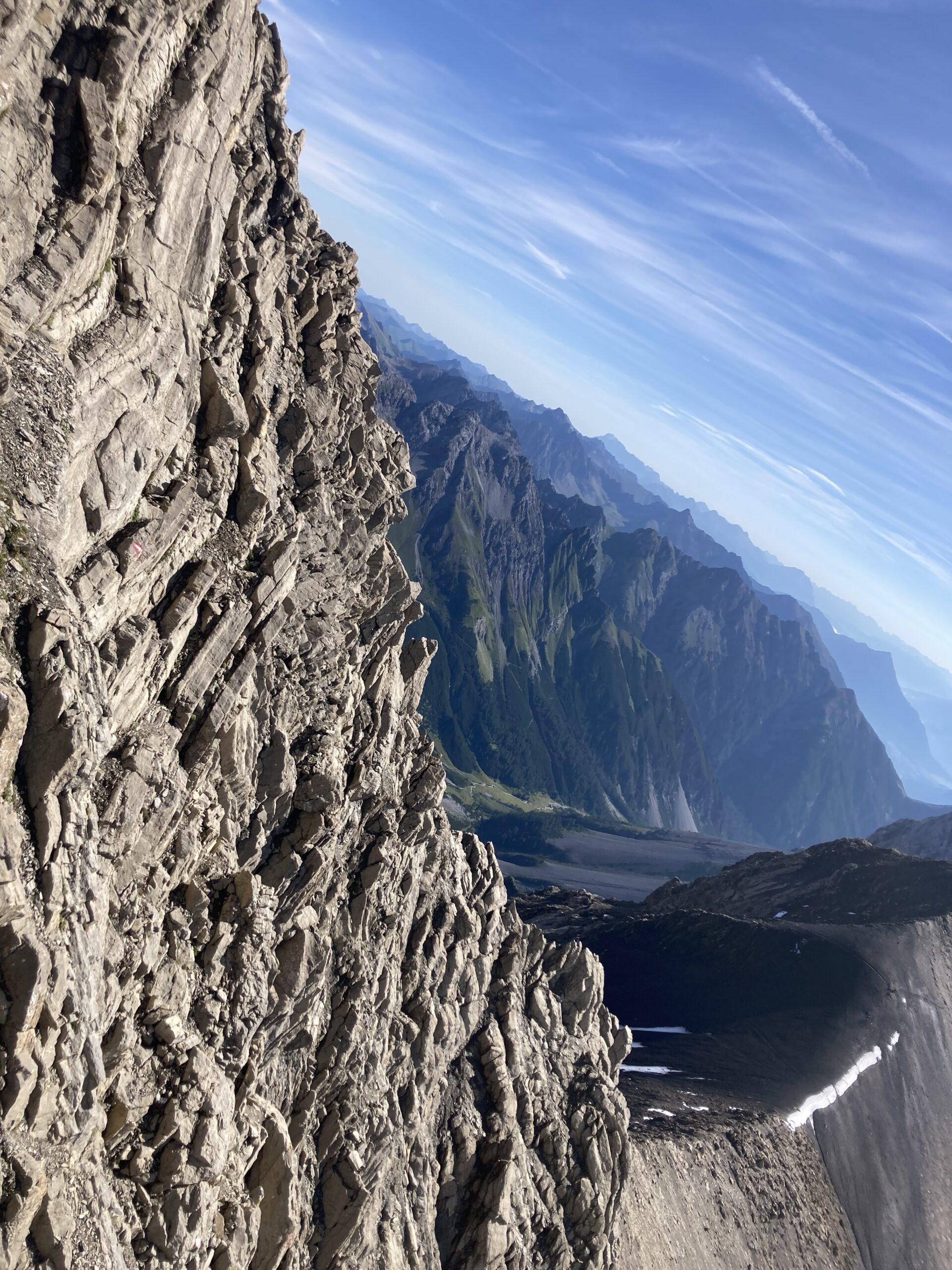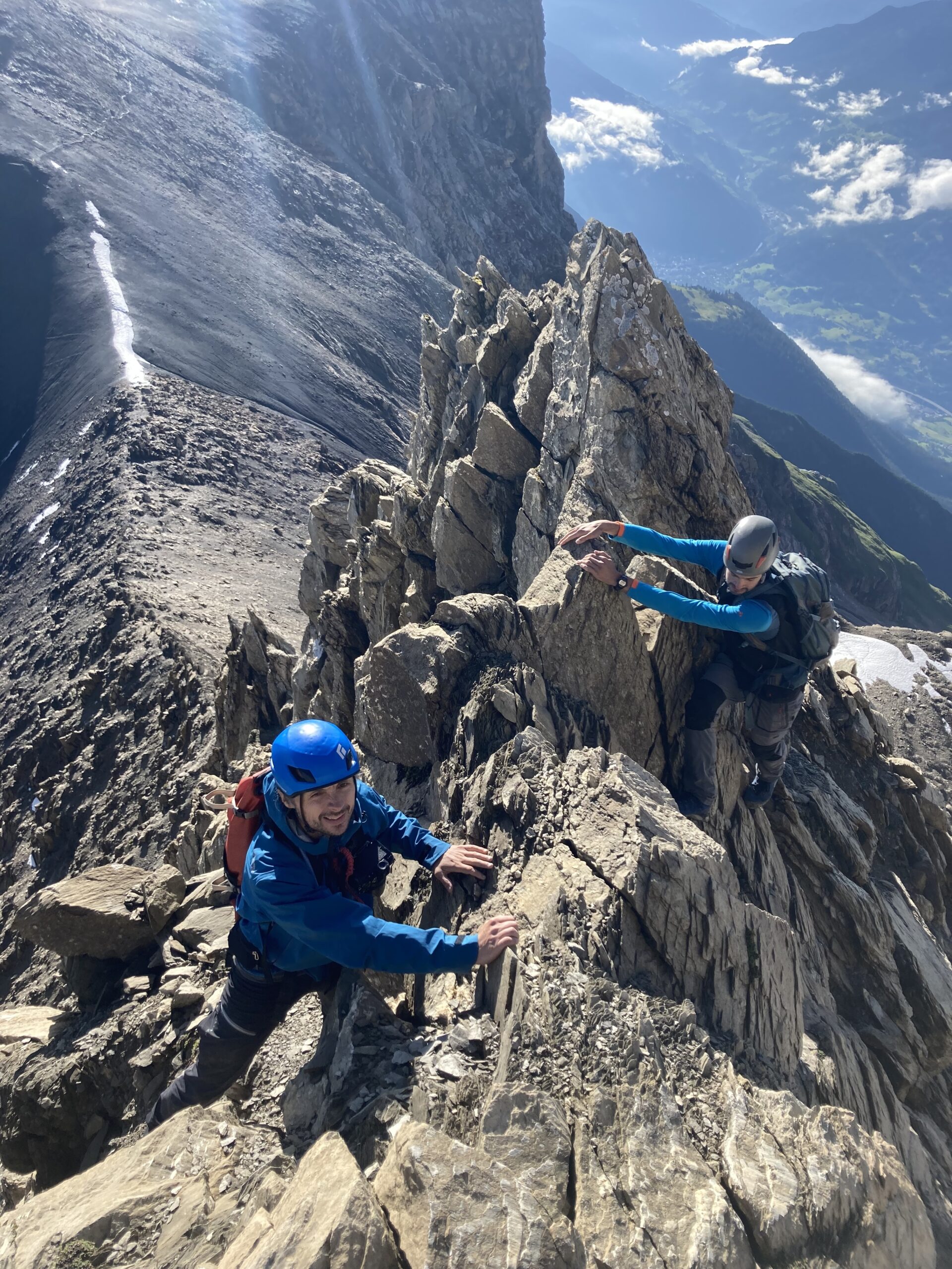 Wecker 5:30 Uhr Thermofrühstück, die Hüttenwirtin hat uns alles schön vorbereiten, Super! kurz nach 6 Uhr Aufbruch, steiler Weg hoch zum Gatschkopf aber einfach, am Gipfel tolle Aussicht mit der bereits aufgegangenen Sonne / beinahe Sonnenaufgang, kalter Wind, kurz Pause gemacht, Abstieg in die Scharte Richtung Parseierspitze Ostgrat, Helm aufgesetzt, dann los zum Ostgrat, anfangs einfache Kletterei, dann ansteigend mal recht, mal links vom Grat, Schlüsselstelle 3+/4-, ich voraus, hat sich eigentlich gut angefühlt, Raphael und Roland sind die dann unten umgangen, weiterhin schöne Kletterei ich 2. Schwierigkeitsgrat, fester Fels, leider zu kurz, schnell am Gipfel, Pause am Gipfel, tolle Aussicht, kaum Wolken, Abstieg über Normalweg, unschön, schwierig, unten mit Stahlseil auf den Schnee und gequert zur Schlucht, durch die Schlucht/Geröllfeld heute viel schneller wie gestern zurück zur Augsburger Hütte, an der Hütte erst mal Kommentar von der Hüttenwirtin „da hätte es kein Thermofrühstück gebraucht“ und Enzian-Schnaps bekommen, cool, alkoholfreies Weizen und Kuchen auf der Terrasse genossen, dann Abstieg nach Grins und weiter nach Pians zur Bushaltestelle, Raphael verabschiedet, Bus nach Pettneu zum Auto und mit dem Auto nach Boden über das Hahntennjoch, welches zu diesem Zeitpunkt noch offen war, am Wanderparkplatz Rucksack umgepackt und dann Aufstieg zur Hanauer Hütte, sehr schnell, Winterweg, Training, TOP, längere Pause auf der Terrasse, alkoholfreies Weizen, Skiwasser, keine Übernachtung reserviert, Abend gegessen, Käsespätzle, dann nach Lager gefragt, Rucksack für nächsten Tag gepackt und dann ins Bett, sehr gut geschlafen, nichts vom schweren Gewitter in der Nacht mitbekommen