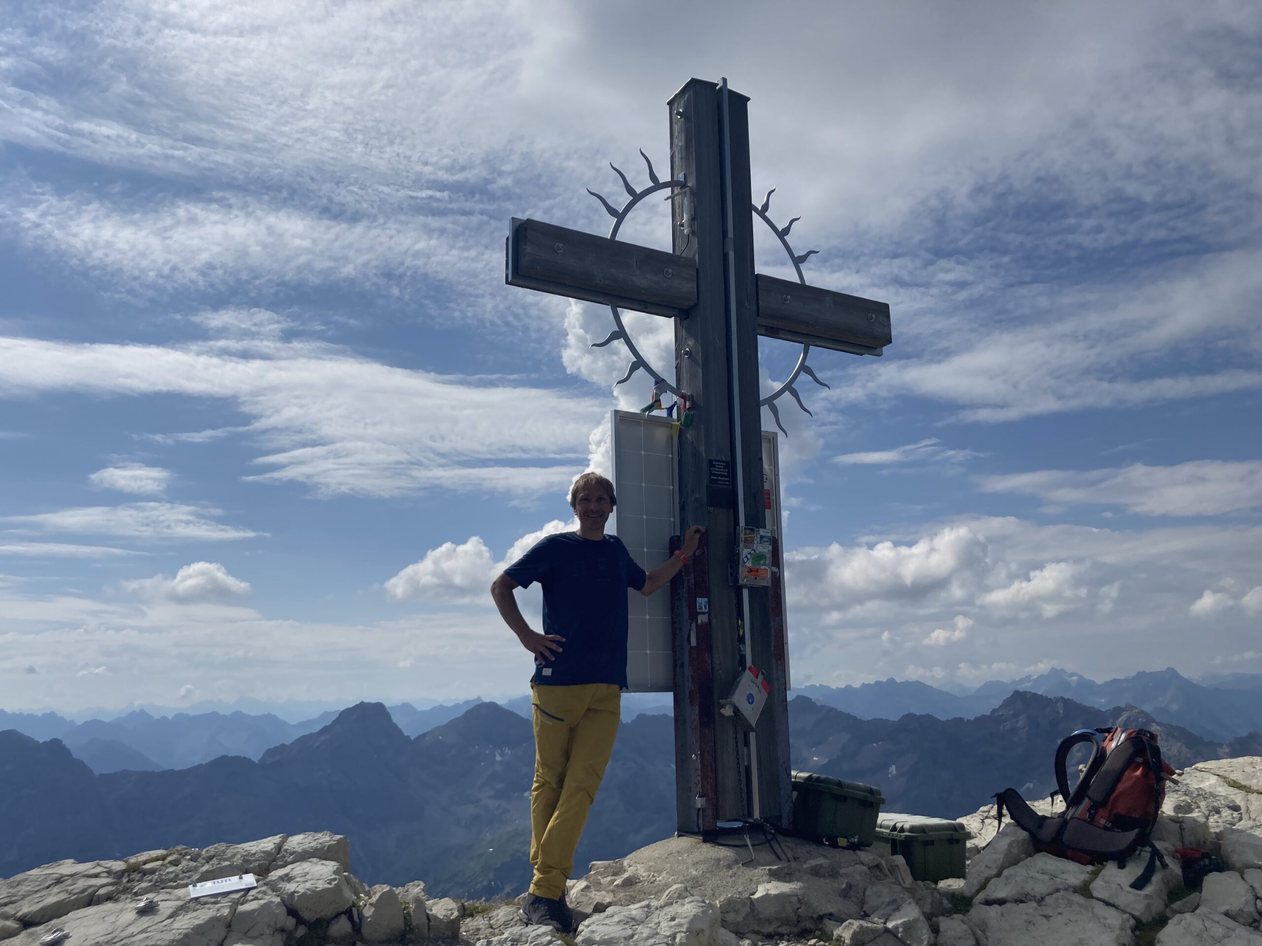 Wecker um 6 Uhr am Parkplatz der Hanauer Hütte / Boden, kurzes Frühstück und schneller Aufbruch wegen Wettervorhersage, Straße zum Hahntennjoch mit Schranke gesperrt, trotzdem vorbei gefahren, dann die Straße aber tatsächlich dicht wegen mehrere Murenabgänge, Plan B: Hochvogel „so lange er noch steht“, Tour hatte ich bereits geplant, mit dem Auto nochmal ca. 30 Minuten bis Hinterhornbach, mittlerweile fast 7:30 Uhr und das schlechte Wetter kommt näher, also schnell los, erst steiler Wanderweg durch Wald, dann Latschen bis dann endlich freies Gelände kommt, dann Querung zum Fuchsensattel, sehr schnell unterwegs, vom Sattel wieder Abstieg in Schuttfeld mit Wegspuren, die hören dann leider irgendwann auf, sehr beschwerlicher Aufstieg durchs Geröllfeld zum kalten Winkel, Schneefeld aber problemlos zu begehen, von dort aus wieder markierter Weg mit einigen schönen Kletterstellen bis zum Gipfel, Zeit 2:40h, WOW! Wetter noch gut, längere Pause gemacht, Abstieg über den gleichen Weg, aber wieder sehr schnell, Geröllfeld wieder sehr beschwerlich, unschön bis zu den Wegspuren, weiter bis zum Sattel, ab dort Trailrunning bis ins Tal, Zeit 1:50h, WOW WOW aber extrem anstrenged!!! als wir mit dem Auto losfahren beginnt es zu regnen